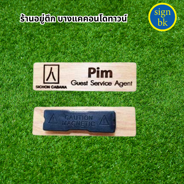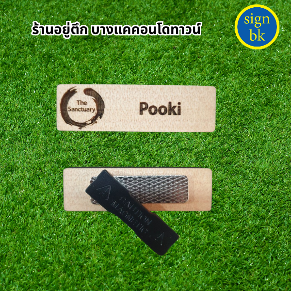 4. ป้ายชื่อติดหน้าอกไม้แกะสลัก 🏗️ ( มีแต่หลังแม่เหล็ก)